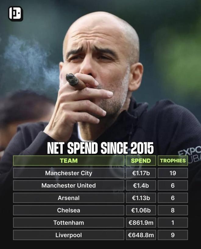 最近一张统计英超六强自2015年以来净支出与奖杯数量的对比图在球迷圈引发热议:有人认为花钱就该多拿杯,也有人强调体系与人事的长期稳定更关键。